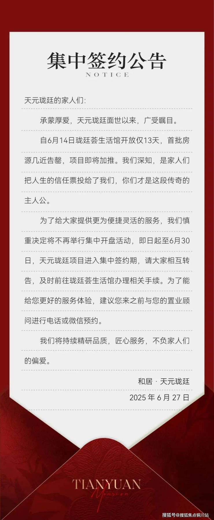 6月27日,无锡最炙手可热的楼盘,锡山东亭核芯的和居·天元珑廷发布公告!自即日起至6月30日,天元珑廷项目进入集中签约期。
