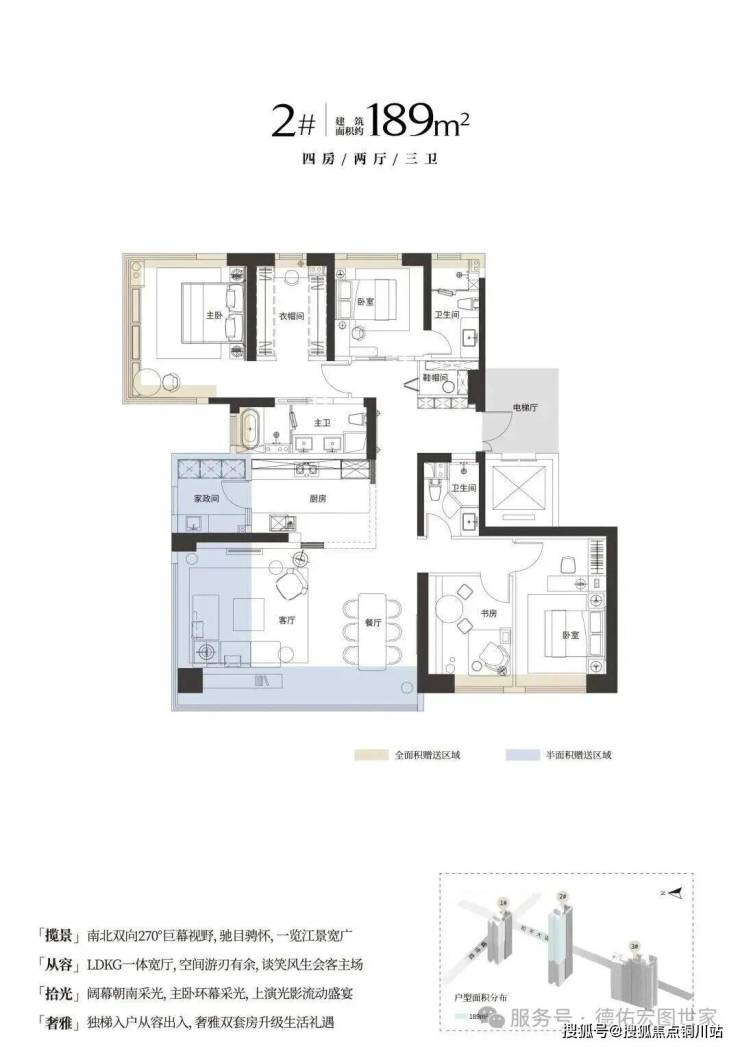 该户型为2号楼16-45层西边户,户型结构与1号楼建面约189平基本一致,不多做赘述。