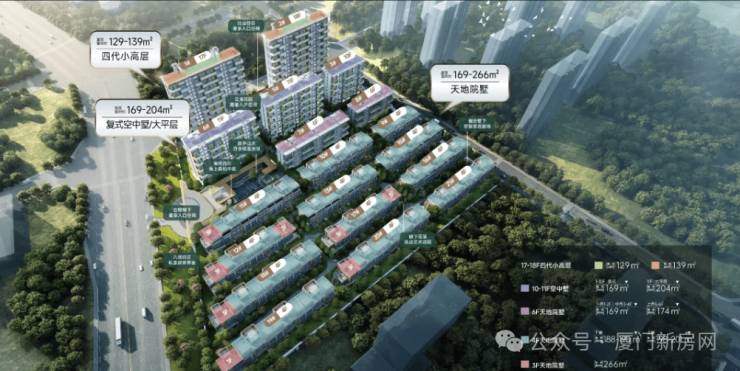 前排瞰景小高:17-18层四代宅,建面约129-139㎡四房,户户配备空中花园,窗墙比达40%以上;