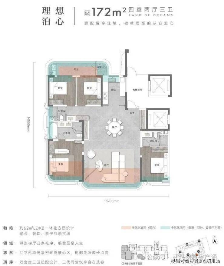 建面约172平户型: