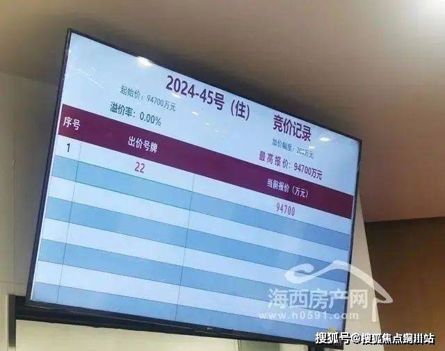 最终,经过1轮竞价,22竞买人福州市润投房地产有限公司(华润)以底价9.47亿竞得福州宗地2024-45号,按照B地块面积35.6亩、容积率上限3.7测算,得出该地块拍卖楼面价为10784.25元/㎡。