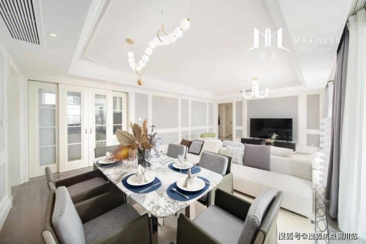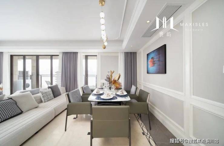 餐厅紧邻客厅,开放式布局促进空间流通与互动。大理石餐桌质感上乘,冷冽的表面与温润的餐椅形成对比。餐椅选用舒适材质,贴合人体曲线,确保用餐时的舒适体验。桌上餐具摆放规整,花瓶中插几支应季鲜花,为空间增添一抹自然生机。在这里,家人围坐,共享美食,窗外江景成为用餐时的惬意背景。联投中心所处的优越位置,让江风似乎都能带着美食的香气,而情谊在交流与美食中不断凝聚,无需华丽辞藻修饰,真实的生活场景在此每日上演。