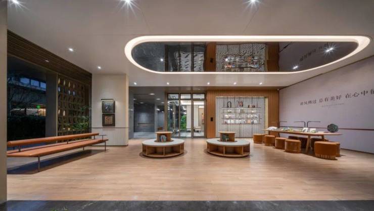 不仅如此,这一次,晓风印翠还做了园区全架空层设计。灰空间带来了社交与互动,而这种邻里之间的联结感,正是当下城市生活所稀缺的。晓风印翠打造了包含阅读、会客、健身、颐养、童玩五大休闲功能的主题架空层,本次示范区展示了4#楼园区书屋和7#楼会客空间,未来的居住者,不用特意找个咖啡馆,拎着电脑下楼就能做个“数字游民”,将工作和生活重新排列组合。