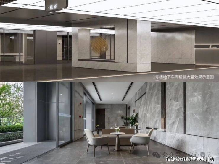 地下车库精装大堂,约4.5米首层精装大堂,由楼栋落客区,到泛大堂、地下车库入户大堂,回家仪式感拉满。