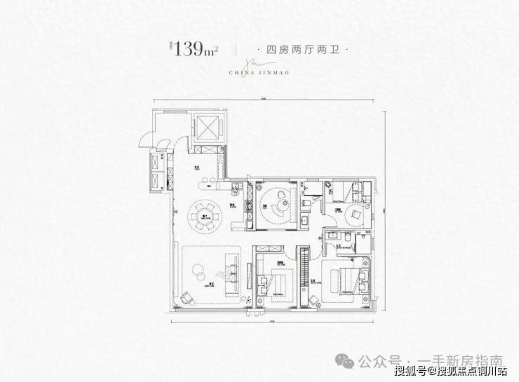 建面约167㎡四房,同样独梯入户,双套房,270度全景舱设计客厅,实际得房率约102.5%。