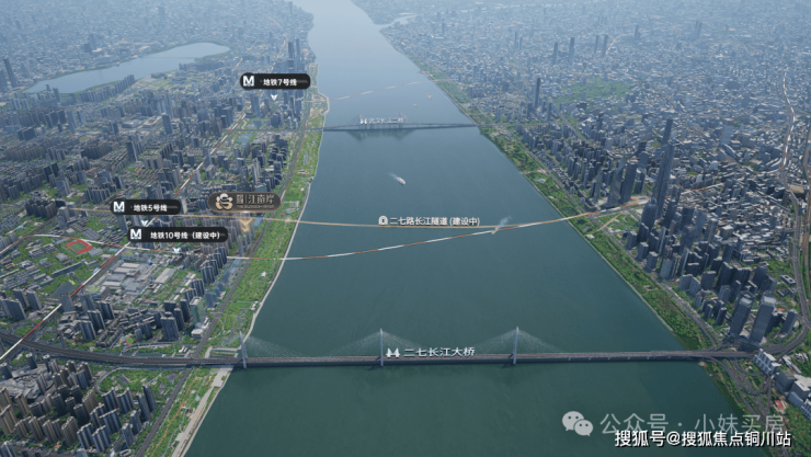 这条通道将高效串联武昌滨江商务区与二七滨江国际总部区两大城市CBD,打破长江天堑造成的价值割裂,促进人才、资本、产业的双向流动,加速形成 “一江两岸、双核共荣”的世界级滨水商务带格局。