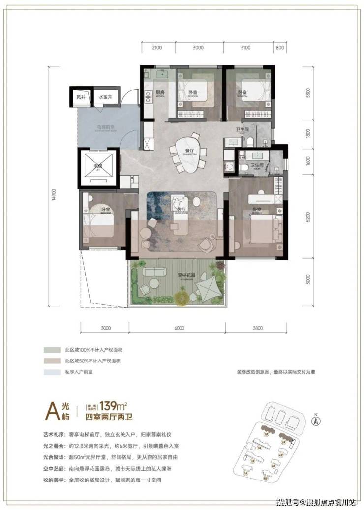建面约139㎡户型采用“四叶草”布局,四间卧室分置四角,通过LDK一体化设计强化家庭互动;主卧套房配备独立卫浴与衣帽间,270°转角飘窗将景观面最大化。