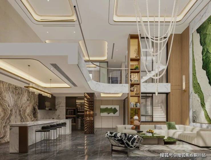 室内动区与静区完全分离,客餐厅与厨房均设置在一层,大落地窗,亦可赏花园美景;所有居室位于二层和三层,三楼南向主卧配有一个超奢华的衣帽间,女主人的礼帽华服,高奢包饰都有巨大的私属空间。