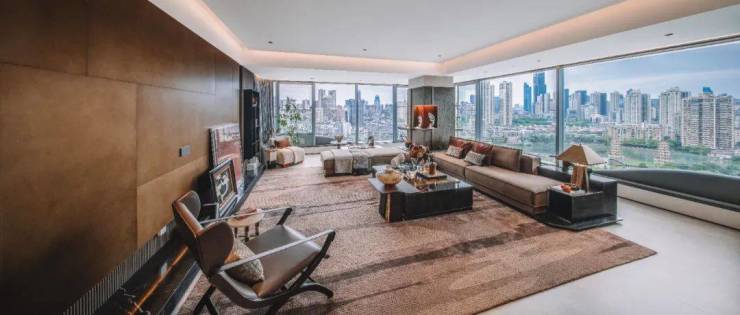 大平层设计:项目全部为 238㎡的四房三卫户型,五开间朝南,得房率高达 89%。客餐厅一体化设计,面积达到 94㎡,搭配约 14 米长的全景落地窗户,270° 采光视野极佳,可俯瞰宝岛公园美景。