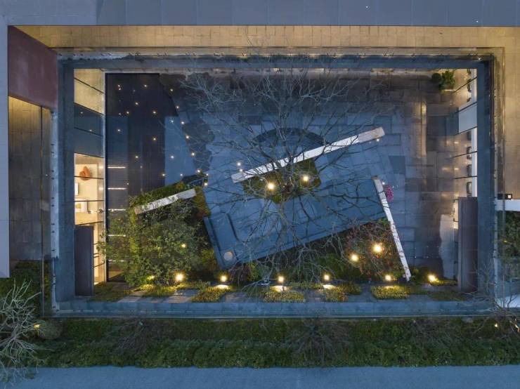 下沉式庭院中央,是一棵树龄近百年的朴树,树冠饱满潇洒、东方禅意缓缓。据说,这是江宁近期项目中最大的一棵古树。