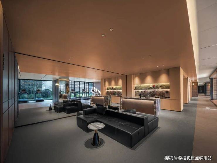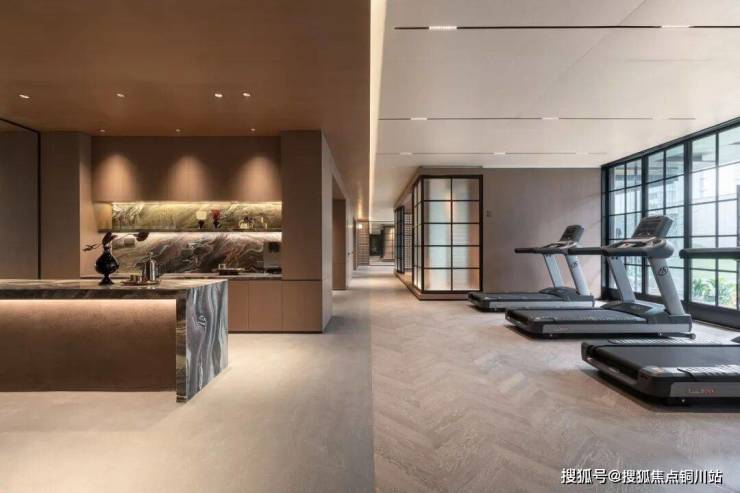 想要运动一下,会客厅的一侧就是星级酒店规格的健身空间,奢石水吧台、休憩区、独立卫生间,还有一方“浮岛式”的瑜伽房……整个健身空间都使用了可开合的折叠落地玻璃门,天气适宜时,可以畅享阳光与清风。