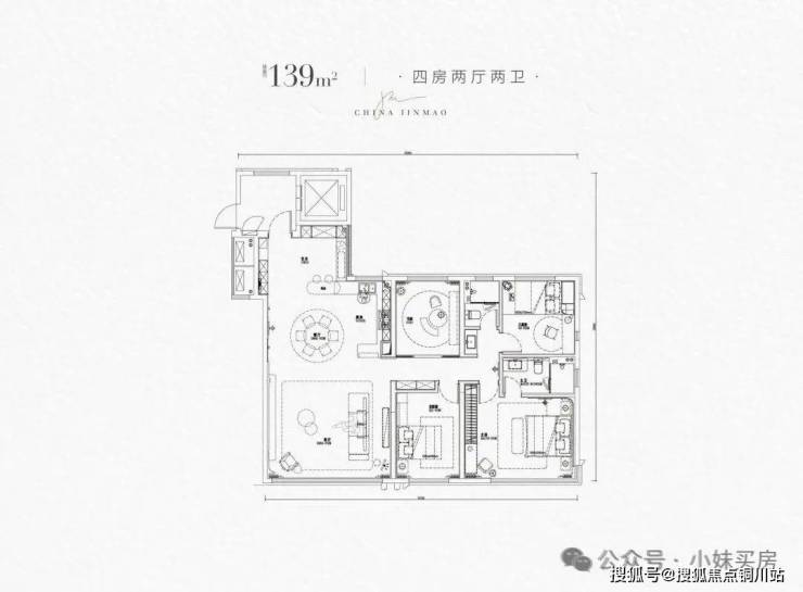 南向四开间朝南,采光面更大。这个户型的最大亮点在于客厅为真正的270度全景舱布局,北面还搭配了生活阳台,这个设计在武汉还是相当少见的