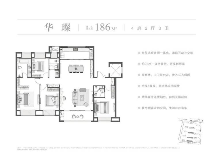 藏于城市中的酒店式八园盛景,五重归家礼序,从日常归家模式的闲庭漫步,到周末假日模式的社交森活,重拾与自然交互的居住信仰;建面约149-250㎡高阶改善尺度标准,以IMAX南向大开间、南北多飘窗、套房级主卧规制等领先格局,重塑璀璨生活想象力。