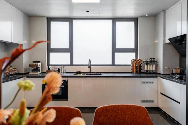 「幸福厨房系统」打破了传统厨房的长进深感,打造U型布局,形成流畅的工作三角区,无论是从冰箱取物、水槽清洗到烹饪准备,都能无缝衔接。