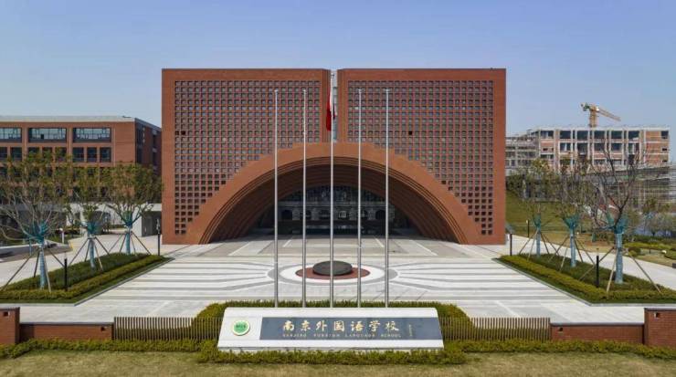 这家楼盘一路之隔就是已经投用的南外高中本部,甚至大门口的引力橱窗上,都映射着南外建筑。