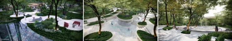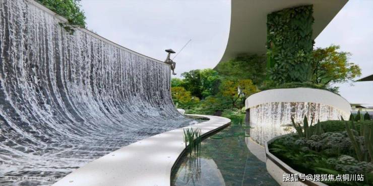 社区入口打破常规,迪拜世博中心同款反重力瀑布,复刻视觉奇迹。28米挑高社区大堂内,汲取日本东京虎之门之丘的设计灵感,打造出华中第一高、中国第二高的室内瀑布。与之相呼应,社区中庭的凡尔赛宫同款悬瀑,水流将如星河般璀璨。