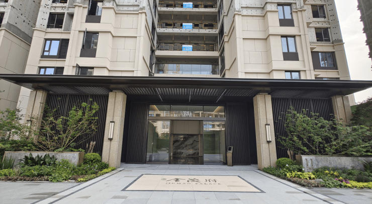 楼栋门楣与前面几期相比更加的简单大气,屋檐式的设计不仅造型更加高端现代,也能起到遮风挡雨的作用。