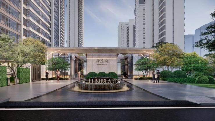 东湖金茂府四期在社区东西侧均规划了人行出入口,且以酒店门厅为设计灵感,设置了层高约6.5米的社区大堂,尽显豪宅范儿。