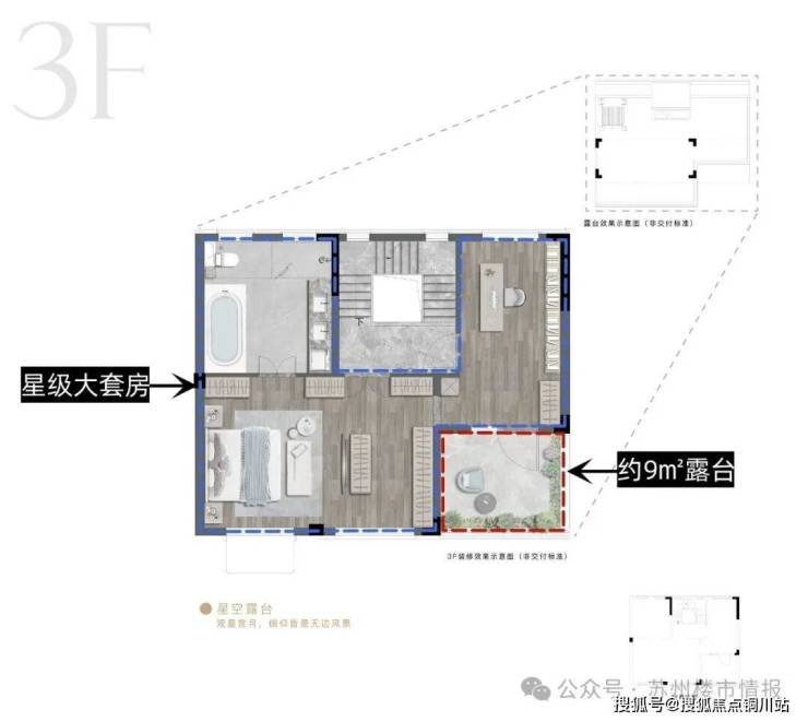 三楼则是约80㎡的星级主卧套房跟星空露台。整层尽享的主人空间,保障了极致的私密与尊崇,真正实现“一层一代人,互不打扰”。