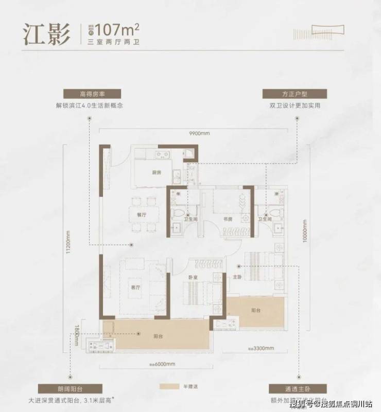 此外,项目的所有户型均配置了双阳台,将生活阳台和景观阳台分开,居家休闲两不误,相当实用。
