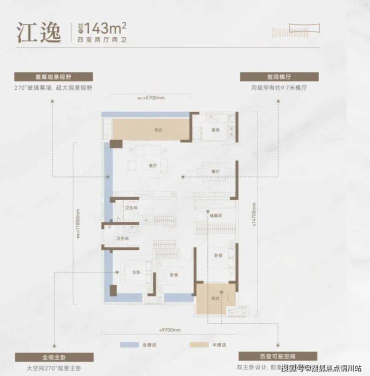 项目作为准四代住宅,新规下的整体得房率在90%以上,其中143平的边户经优化后,得房率可达95%。