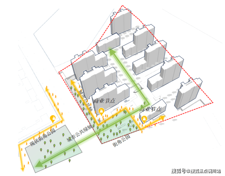 这条串联双社区的绿色动脉,将20000㎡双公园体系转化为区域共享的生态基础设施,实现「市政资源社区化」与「社区资源城市化」的双向渗透。