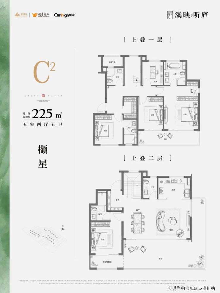 259方边套下叠,二楼为四房含双套房设计,主卧套房面积约32方,外接约7.55米的跑道式阳台;一楼也是做了角厅设计,超宽舒的客餐厅,约7.55米×6.1米,采光和视野非常通透敞亮。