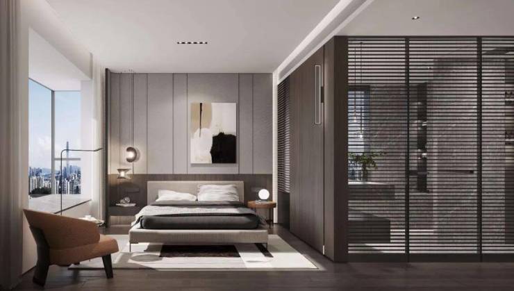 米白色与浅灰色结合的立面色彩,选用“高透光、低反射”的大面积落地玻璃,搭配香槟色铝板和石材等高端材料,实现超高南向窗户比,打破空间壁垒,这样的立面肌理,让每一套房子都变成看得到风景的“城市观景台”,豪宅品质一览无遗。