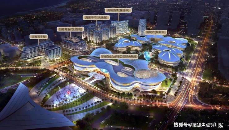 旅·海上都会占位西海岸新海港门户板块,占地485亩,项目定位为全球首个免税商业文旅休闲目的地,其业态涵盖免税商业、有税商业(规划中)、海景华宅、滨海写字楼、创意商业、品牌酒店(在建中)等规划。通过六大地块有机融合,致力于构建国际化文旅休闲目的地新标杆。