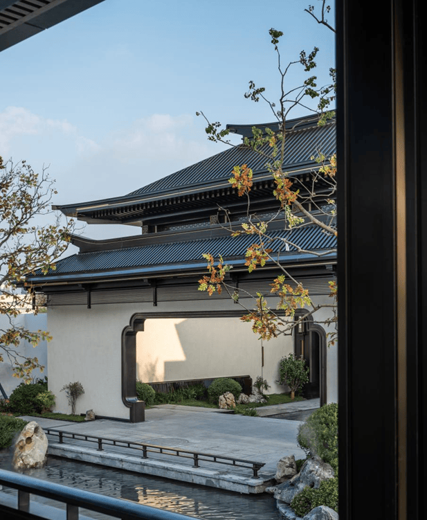 设计团队另从宋代礼序形制中汲取灵感,登门望府,以现代视角阐述宋式溪山雅境脉络,打造出“一进登门、二进游园、三进府居”的三进归家礼制。