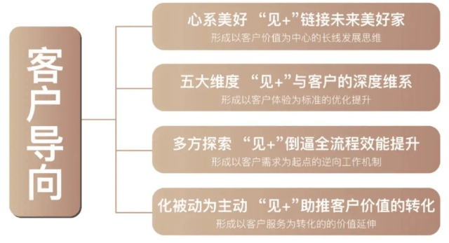 按照中国铁建地产“美好家”服务品牌要求,中南公司从实际服务场景和业主的体验出发,通过对项目开发价值链全过程的客户触点分析与提炼,深度分析全生命周期的各阶段触点127项,形成“见+”5X全维客户服务体系,将服务产品化,为业主打造极具认同感与归属感的全周期服务,以服务力影响品牌力,以创新力提升竞争力。