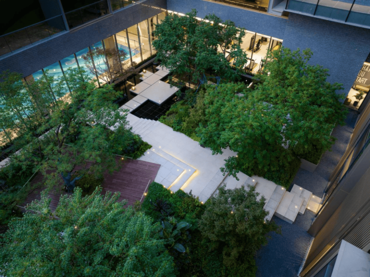 园林整体呈“一环两轴五巷”布局,结合知音文化和“古汉阳十景”打造的十字景观中轴,曲径通幽,串联起约5000㎡中央私享花园、林下休闲阅读角、老年康养区、儿童游乐区等功能空间,富有艺术感的景观小品点缀其间,处处有园,时时成景。
