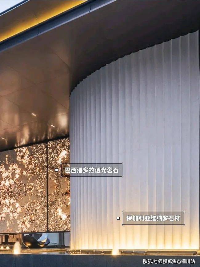 步入大门,需先踏上七级由黑金沙整石雕琢而成的台阶,每一步都显得沉稳而庄重。台阶尽头,一块来自巴西的潘多拉透光奢石赫然在目,它被誉为全球“奢石之王”,以其罕见的透光性、变幻莫测的色彩与纹理,成为了整个大门的点睛之笔。在日光的照耀下,它熠熠生辉;而当夜幕降临,这面墙更是璀璨夺目,仿佛一盏永不熄灭的灯塔,指引着归家的方向,温暖而安心。如此设计,不仅展现了建筑之美,更蕴含了深厚的情感与寓意,让人在踏入这扇大门的瞬间,便能感受到家的温馨与尊贵。