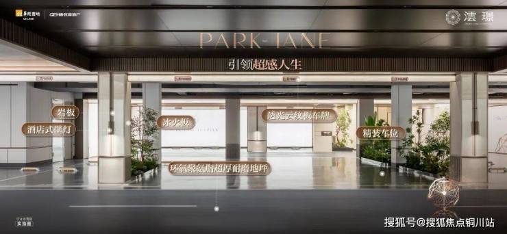 环氧聚氨酯超厚耐磨地坪、车道大面为东京银座 DIOR 旗舰店同款蜂窝铝板吊顶、车库大堂门厅使用阿玛尼奢石门把手、全区采用安达仕酒店同款无机磨石拼花地坪…