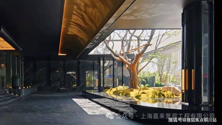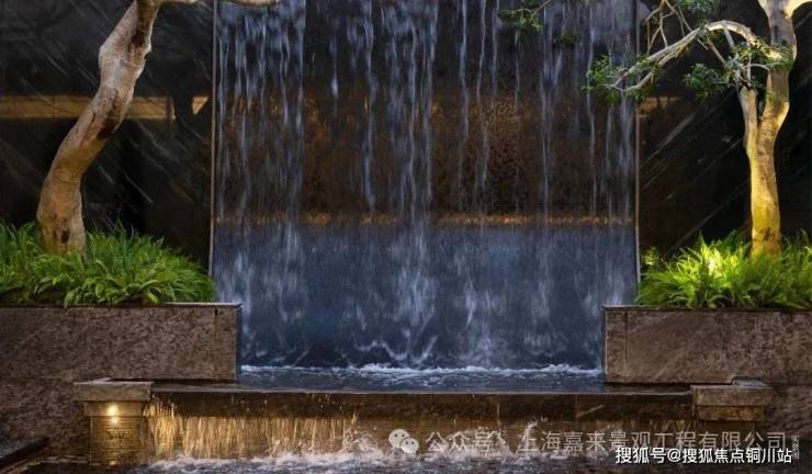 西侧水景连廊,弧形切割瀑布墙轻泻粼粼波光。水声潺潺,如自然溪涧近在耳畔,穿梭其间,恍若漫步山水诗境,心境随之静谧而崇高。