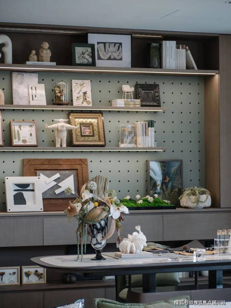 项目的下沉庭院,取意于古汉阳十景,如诗如画,庭院池底是凤凰图腾,楚文化展示长廊、揽月雕塑,延续云梦古泽、高山流水的意境,打造一番山水小天地;样板间的中央空调出风口与室内门面,均采用定制的蛟龙纹。