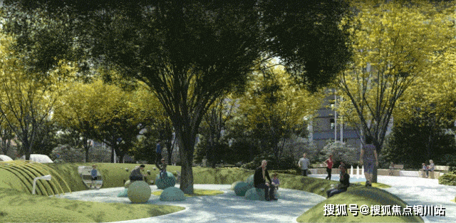 公园整体围绕入口景观空间+静谧花园空间+智慧运动空间三大功能区,内部还设置了悦动环、解码营地、自然剧场等健康场景,从大人、孩子甚至萌宠都有自己一方娱乐、运动休闲的场地。