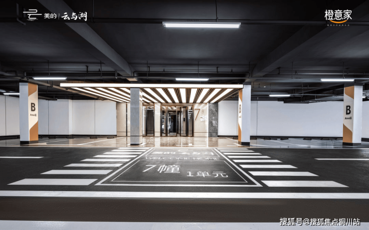 地库坡道末端采用45块1.2*1.2铝板组合亚克力,营造出整个强烈奢华感的星空顶。这是美的置业在徐州的首个地库星空顶,千百盏LED灯洒下柔和光线,置身于此,恍若沉浸于璀璨银河,给业主不一样的归家体验。
