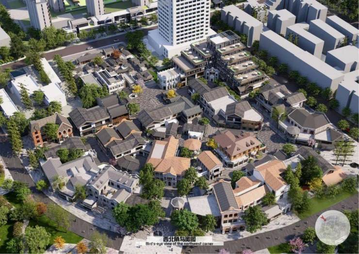 其中1#地块用地性质为商业服务业用地,包含酒店、餐饮等,内部还分为多个主题广场等,整体设计也都偏向于徽派建筑的特色。