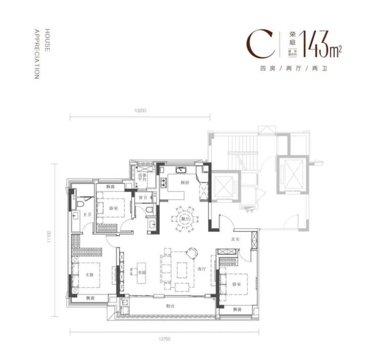锦上荣曜建面约143㎡户型图