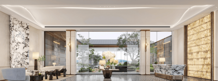 项目以无锡千年人文为底蕴,师法名园形制,构筑妙音阁、听瀑轩等迎龙八景,为无锡再造一座“寄畅园”。