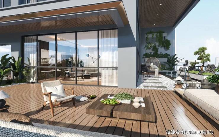 4、约8.9米宽南向空中庭院:实现推窗即庭院的生活感受,可以在这里侍弄花草、品茗休闲,甚至还可以进行户外烧烤。