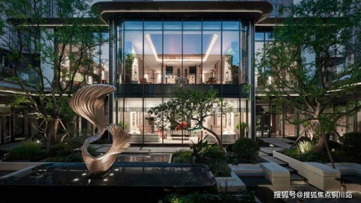 酒店式环岛落客区,藏风纳气的聚宝盆水景,将喧嚣隔绝于外。超70米东方门庭,《千里江山图》照壁,呈现出静谧与美感兼具的中式之美。