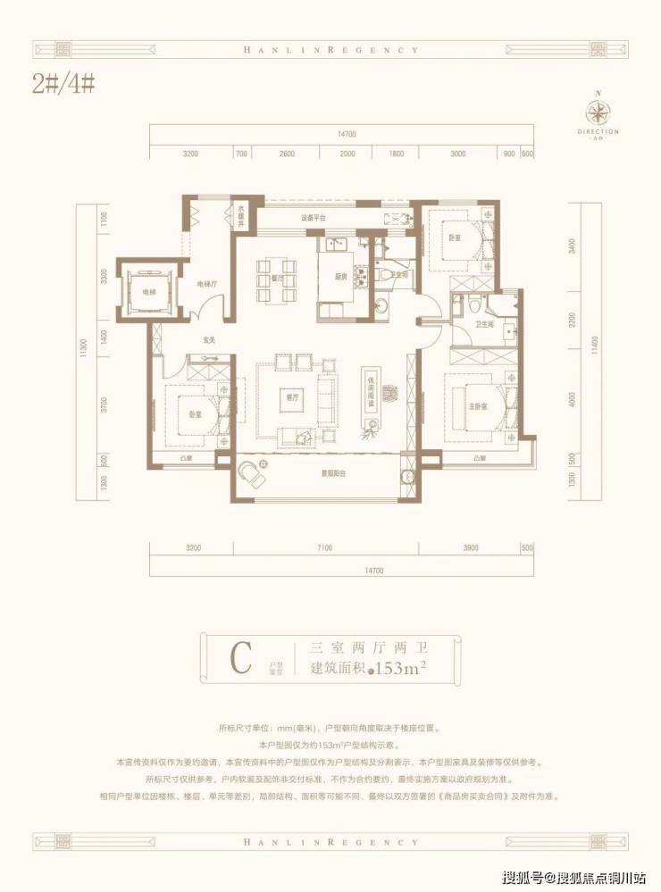 瀚林甲第二期【建筑面积约122—215㎡会成长的户型】将适应儿童成长的每个阶段充分融合进去。全部户型均享私家电梯厅,这套153㎡的洋房户型,私家电梯厅,子母入户门7.1M宽厅,承载奢适四居,以宽距成就X创享空间,南北双阳台、餐厨合理布局,尽享烹饪与聚餐的双重乐趣。