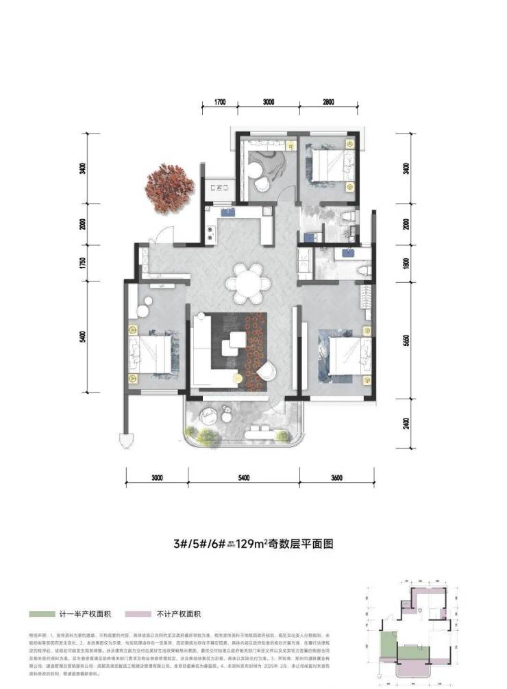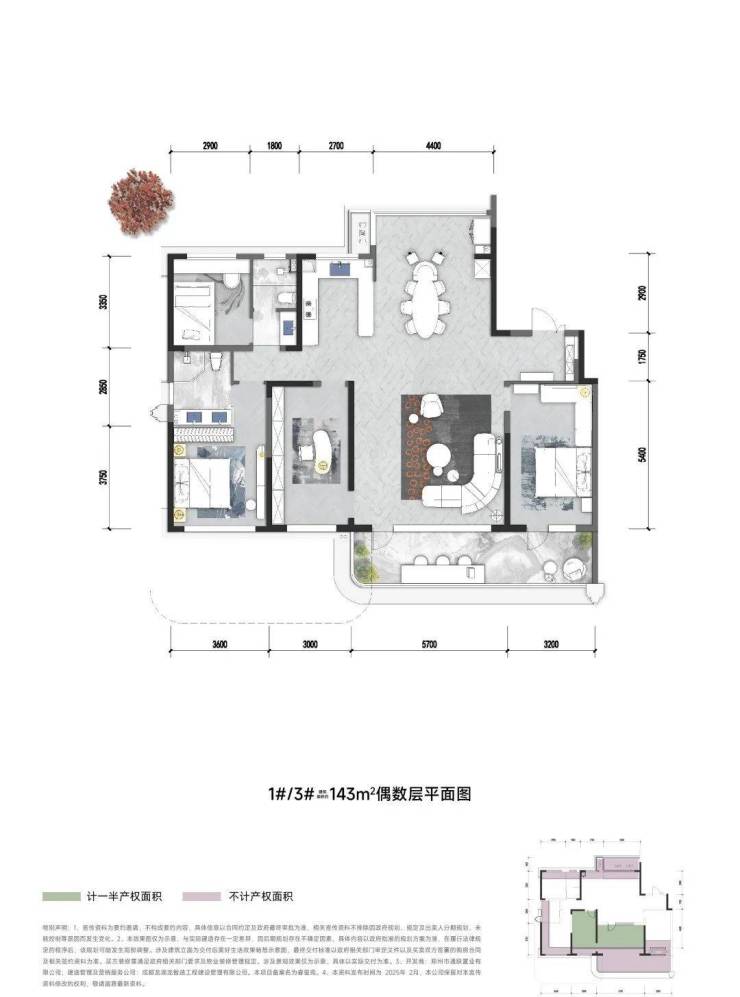 中原颂户型面积段很纯粹,全部四房设计,建面约129㎡和143㎡。129㎡四房得房率105%,套内面积134㎡,相当于市面上常见的建面179㎡的使用空间。建面143㎡的四房,得房率更高,115%,套内面积165㎡,相当于市面上建面220㎡的空间。