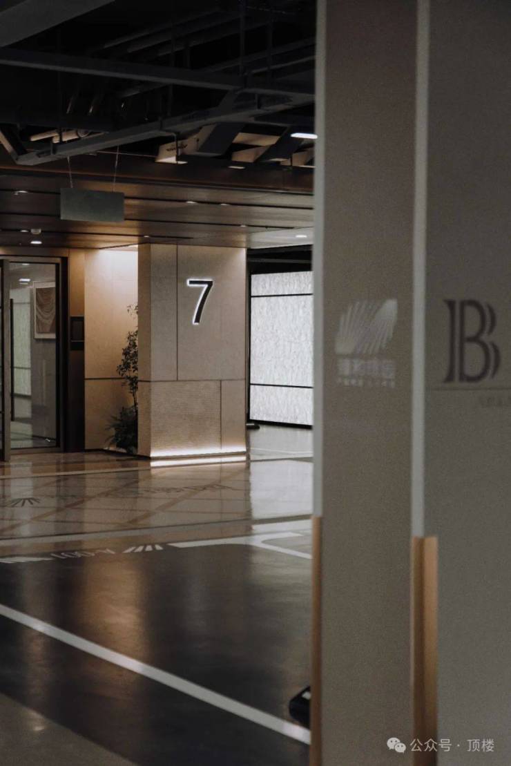 通过分色设计将停车区与车行道动静分离。落客区的顶部铝板吊顶,搭配射灯、地下大堂入口的创意小景,归家仪式感直接拉满。