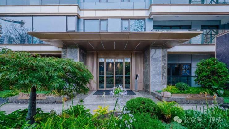 单元门头采用全石材+电动平开玻璃门,归家动线融入人脸识别系统,仪式感与科技感并存。