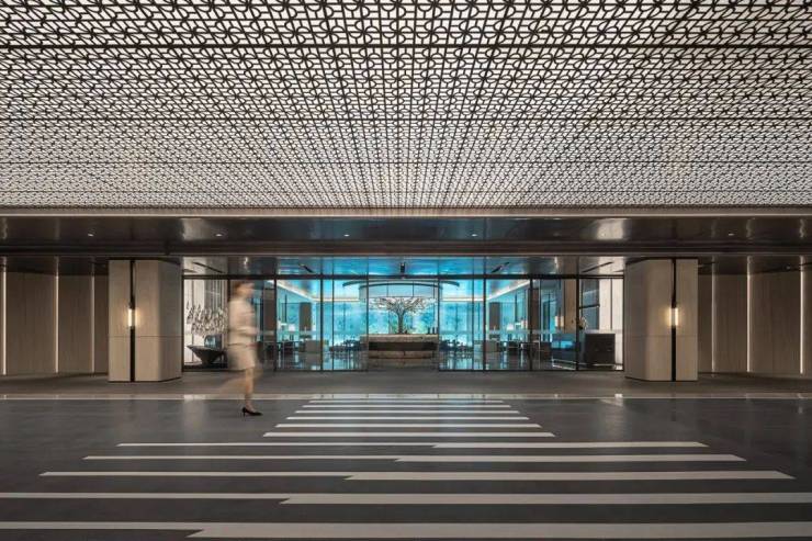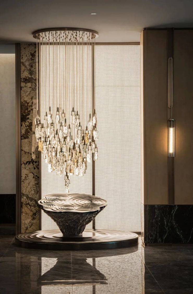 江城”武汉,是一座依水而生,因水而兴的城市,以水纹为体的艺术装置,让文化以更深层次的手法谱写,与硬装基底融为一体。