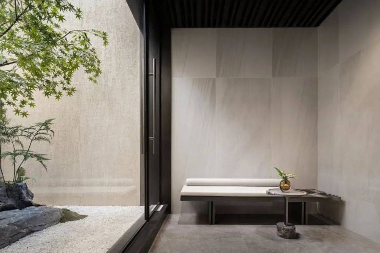 进入院落,是一座带有东方清雅柔逸之风的宋氏建筑,院落正门步入便是阔落的庭院,与建筑外观风格不同,室内外的设计充满了大胆的混搭,艺术在其中流淌,大胆却和谐。