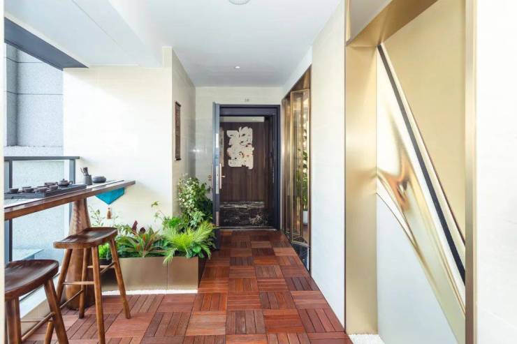 电梯前室,家政空间、入户庭院等都能被拿来利用。这部分空间除了承担家庭收纳的作用,还能成为家中最有呼吸感的“第三空间”。